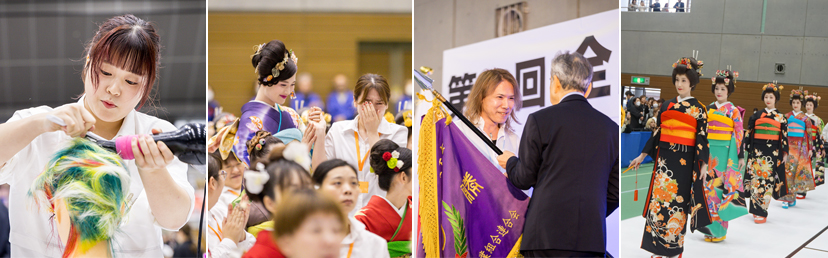全日本美容技術選手権大会(全国大会)は、全国47都道府県から選ばれた美容技術者が、日ごろの美容技術の研鑽の成果を競い合う場として1962年より開催しているもので、厚生労働省後援のもと、ヘアや着付など、各部門の日本一を決める美容業界最大最高のイベントです。