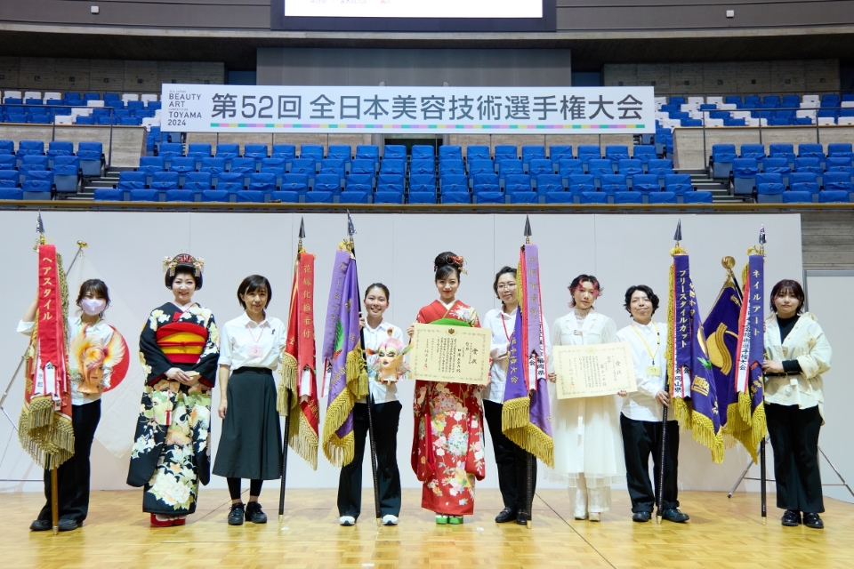 第52回全日本美容技術選手権大会が11月19日、富山県富山市の富山市総合体育館で開催されました。 各競技及び第26回作文コンテストの成績は以下の通りです。